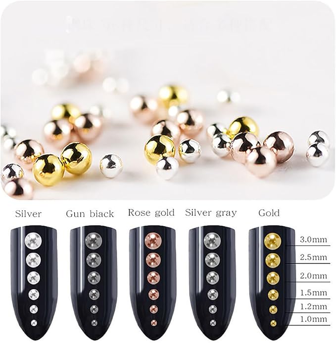 - ăTiny nail charmsăSilver mini beads with Round silver gold nail charms and gems beads for Jewelry Making Fake Pearl Beads for Bracelets Necklaces Earrings Key Chains Accessories DIY.Rose Gold Silver Black 3D Metal Micro Beads Nail Art Decorations Caviar Beads Manicure Fake Nails Accessoires